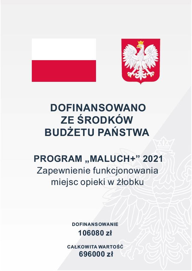 Nasze żłobki otrzymały dofinansowanie do funkcjonowania miejsc opieki w ramach resortowego Programu Ministra Rodziny i Polityki Społecznej "MALUCH+" 2021